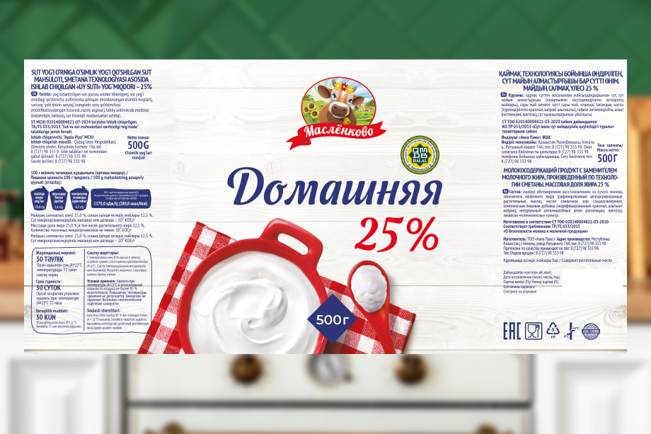 На рынке Узбекистана сметана «Масленково» представлена как традиционный молочный продукт для повседневного использования. Упаковка должна была вызывать ощущение привычного вкуса, чистоты и надежности.