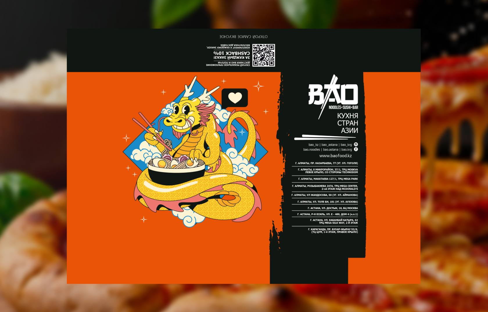 BAO Noodles Sushi Bar uchun o‘rash brendingi: Osiyo taomlariga yorqin aksanlar
