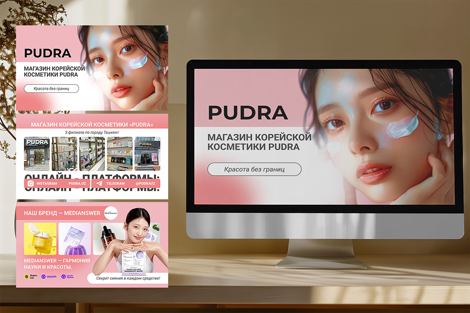 Grafik dizayndagi har bir loyiha — brend xarakterini vizual orqali ko‘rsatish imkoniyati. Yaqinda biz Pudra — O‘zbekistondagi energiyali koreys kosmetikasi do‘konlari tarmog‘i uchun taqdimot tayyorladik. Ushbu keýs oddiy ma’lumot qanday qilib chiroyli va sotuvchi hikoyaga aylanishini ko‘rsatadi.